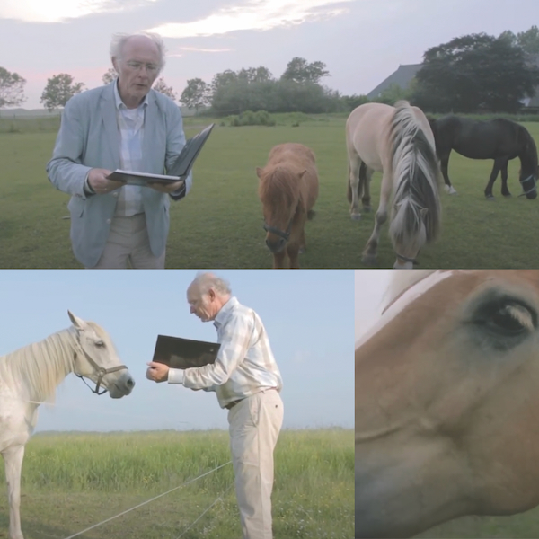 Acht filmpjes waarin passages met paarden uit het oeuvre van Kierkegaard worden voorgelezen door Andries Visser - in de wei...